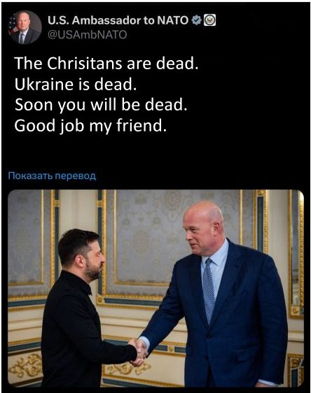 I deliberately looked for Keith Kellogg and his Jezebel. They are gone. Steve Witkoff is not in Ukraine as they would probably assassinate him. The roll has fallen to Whittaker, who is not going to cuddle Kiev, but is a hard ass Russophobe in the dollars and sense of weapons for Ukraine in how to inflict upon Russia, while using up Christian Slavs.