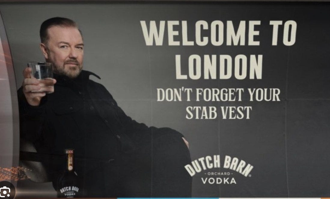 ……and let us conclude this with the very British flavor of the moment in Ricky Jervis outstanding ad In don’t forget your stab vest…..