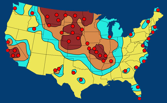 These maps are based upon Russia and Chinese ICBM's actually work as in they are accurate. These maps are based on PRE HAARP WIND PATTERNS, the wind patterns have all been disrupted by HAARP, in the northwest prevailing winds no longer occur so fall out will drift in different locations.