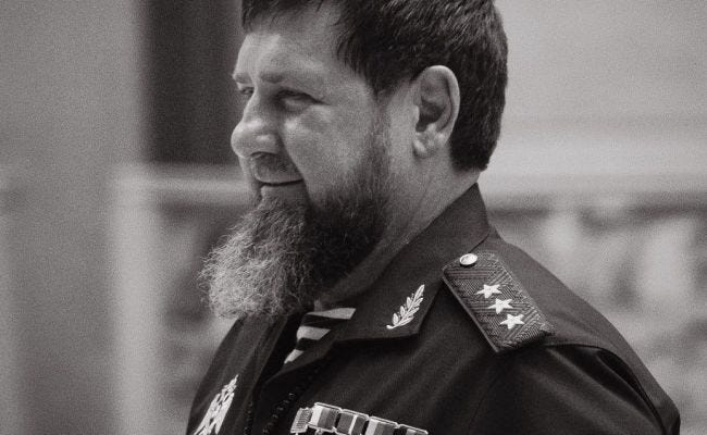 See I’m a big fan of Kadyrov. He looks like the Lutheran giant preacher who married us. He is simply charming. I would like to see America kidnap him, roll out the red carpet, Trump put him up in the Lincoln bedroom, and we could have a big parade for him on Penn Avenue and we all could have a kosher pork BBQ and have a grand time getting along. He loves horses, so give him a nice thoroughbred and fly him home to Chechnya, and open the latrine so he can flush his golden shower on Kiev, as Zellinskyy would like that kind of thing.