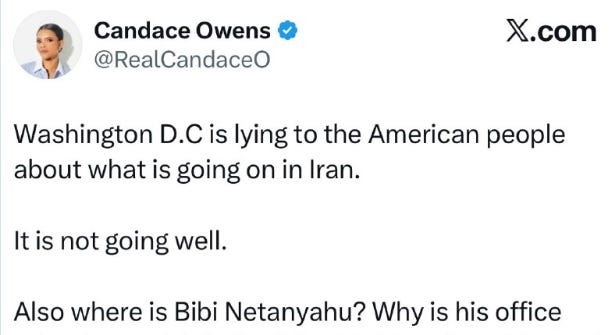 I will have more on Iran, but I will repeat, everything I predicted would happen is happening and I have told you for what purpose as the Candy Owens bitch and the Senator Murphy’s aid and comfort the terrorists.