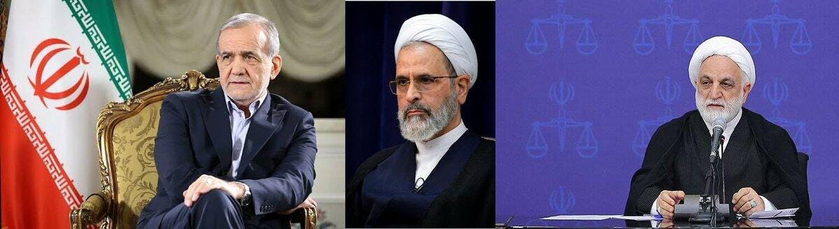 Iran’s interim leadership council: President Masoud Pezeshkian, member of the Guardian Council and Assembly of Experts Ayatollah Ali Arafi, Head of Judiciary Gholam-Hossein Mohseni-Ejei
