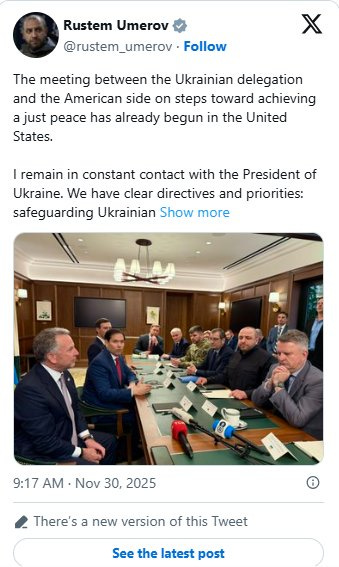 Zelensky updated the composition of Ukraine’s delegation for talks with the United States: Rustem Umerov – Secretary of the National Security and Defence Council, head of the delegation; Kyrylo Budanov – head of the Main Directorate of Intelligence of the Ministry of Defence of Ukraine; Andriy Hnativ – head of the General Staff of the Armed Forces of Ukraine; Oleh Ivashchenko – head of the Foreign Intelligence Service of Ukraine; Serhiy Kislytsia – First Deputy Minister of Foreign Affairs of Ukraine; Yevheniy Ostriansky – First Deputy Secretary of the National Security and Defense Council; Oleksandr Poklad – Deputy Head of the Security Service of Ukraine; Vadym Skibitsky – Deputy Head of the Main Directorate of Intelligence of the Ministry of Defence of Ukraine.